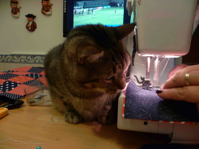 Dentro do saco de retalhos que a M. me deu, vinha uma saia de fazenda desmanchada. Gostei logo do padrão. Ontem durante as limpezas da sala reparei que as almofadas do sofá estavam desactualizadas e já muito feias. Estive quase a jogá-las fora mas, o interior estava impecável, depois havia o fecho que dava para aproveitar e, numa sequência rápida de pensamento achei que podia aproveitar a parte de trás das almofadas e fazer uma frente nova.