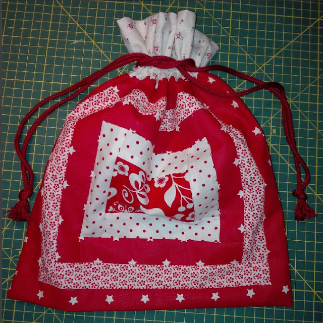 Hoje a tarde foi passada a fazer bolsas térmicas. Também fiz um par de pegas para aproveitar alguns retalhos dos talegos natalícios que tenho feito,