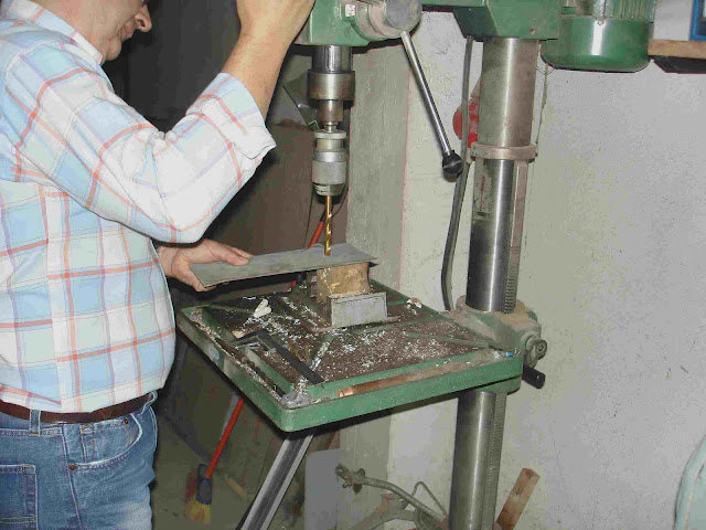 As férias acabaram e eu não tinha conseguido encaixar tudo por falta de peças, havia que desenhar e fazer uma por medida. Para isso era necessário uma chapa metálica e um torno, lembrei-me de alguém que tem uma oficina super bem equipada e que não há ferramenta ou maquinaria que não possua.