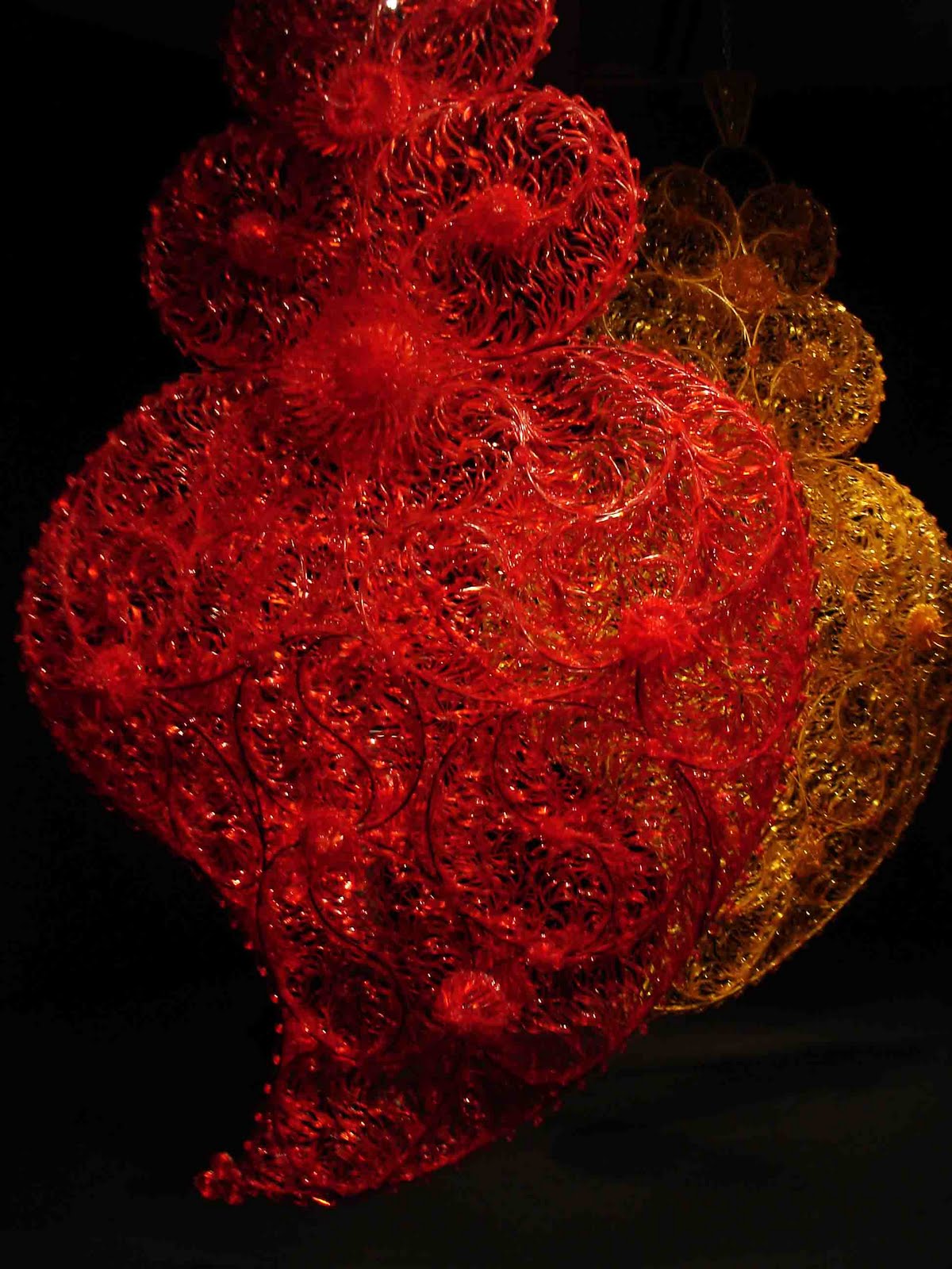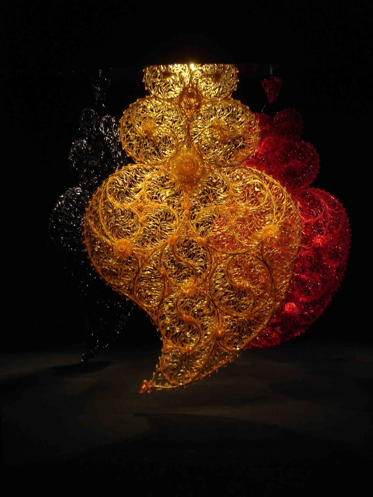 Os gigantescos "Corações Independentes" criados com talheres de plástico coloridos ( vermelho, laranja e preto) que nos seus 3,70m nos levam até ao mundo da Filigrana Portuguesa, nos recordam a Grande Amália e apelam à nossa Portugalidade.