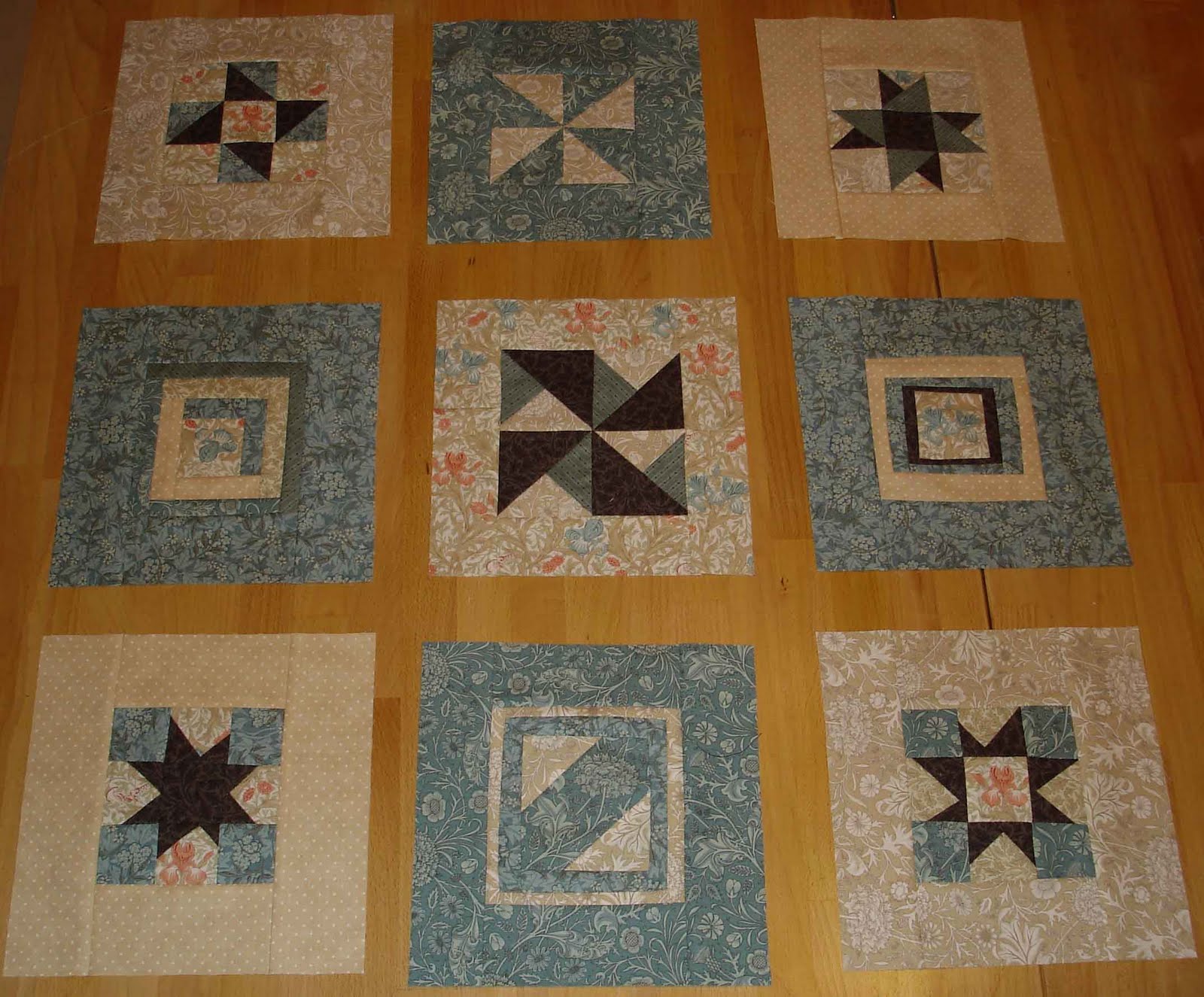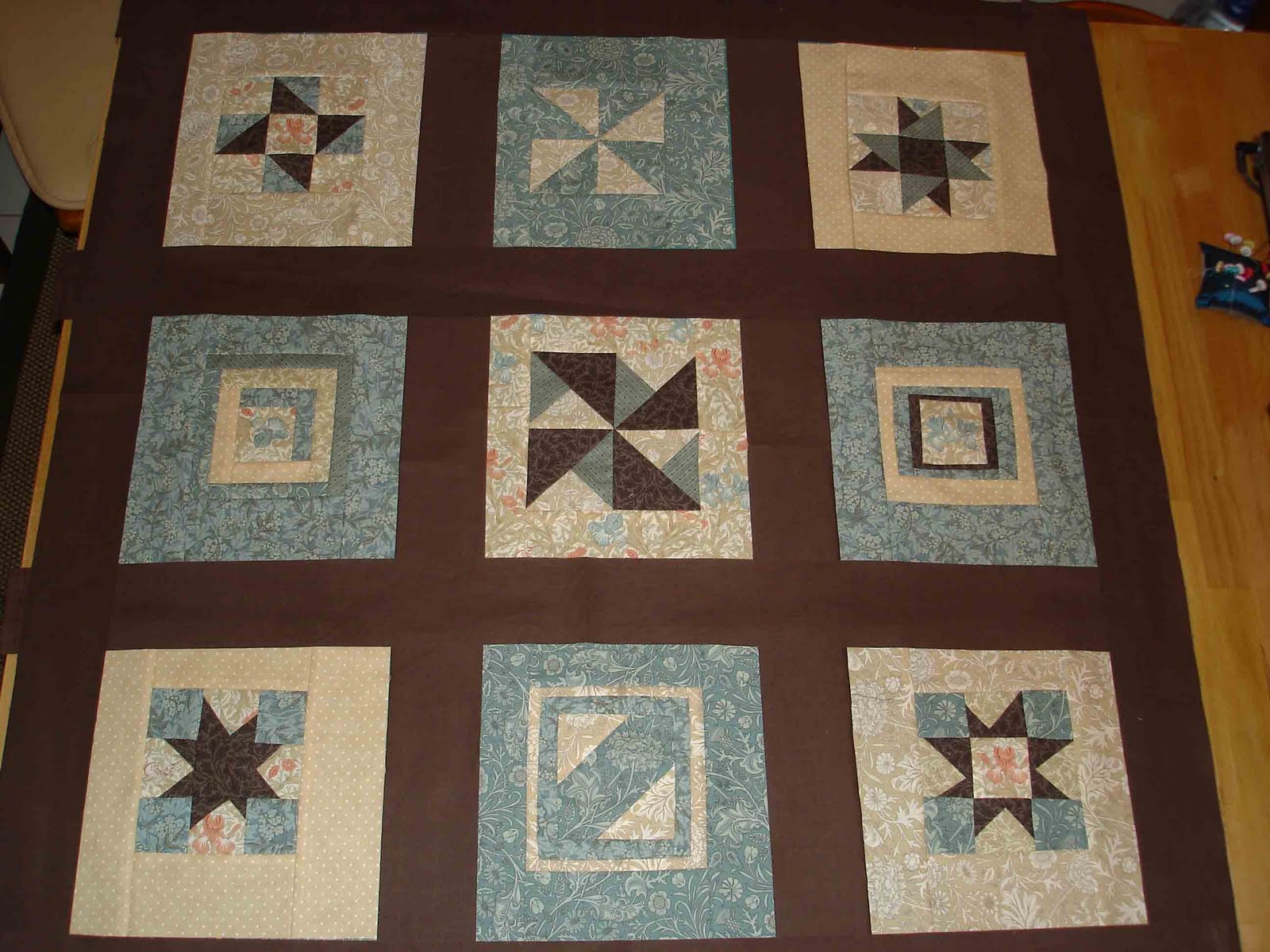 Wonkey Stars, Wonkey blocks,Pinwheel, Log Cabin, Double Friendship Star, uma pequena amostra de blocos em Patchwork.