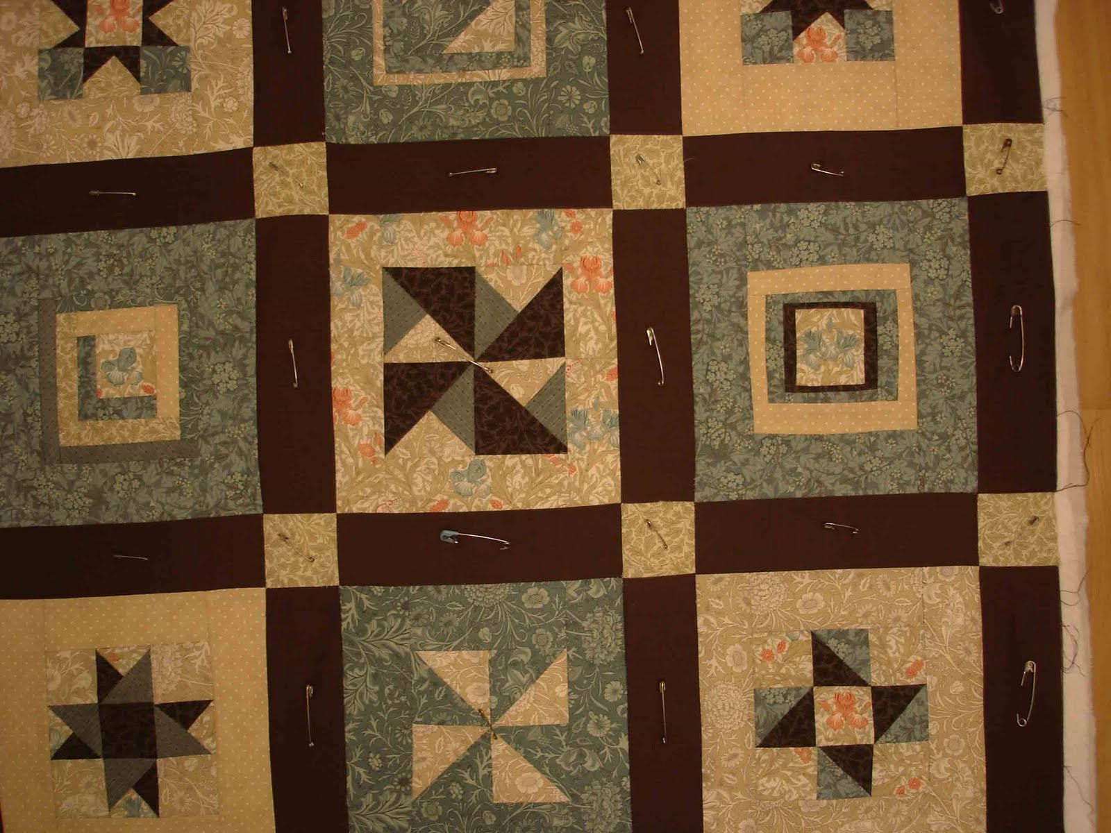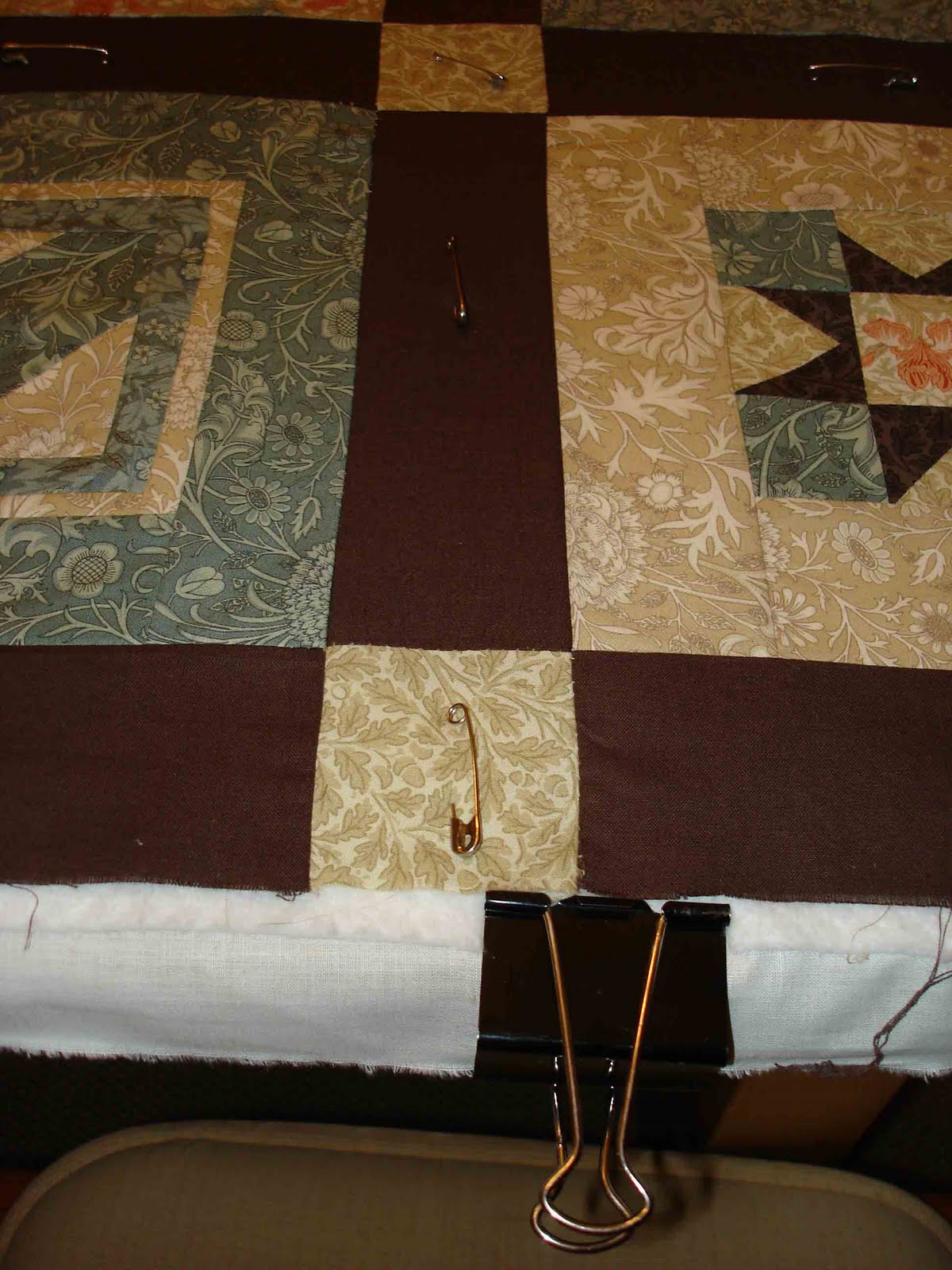 Depois de alguns apoios que recebi incentivando-me a não ter medo de usar a minha máquina de costura de supermercado, aventurei-me a unir o trabalho de patchwork à tela e ao forro, a fim de obter um quilt a sério.