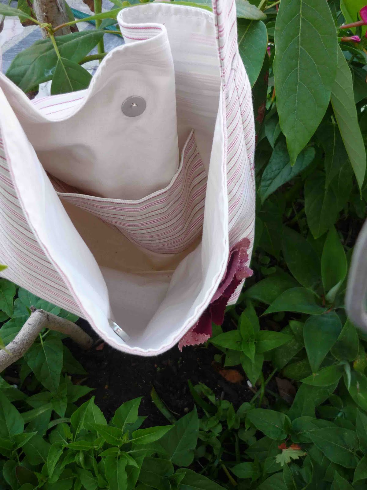 Também foi ela que pediu para colocar uma uma flor em tecidos contrastantes para dar uma graça ao saco que é forrado tem bolso e fecho magnético.