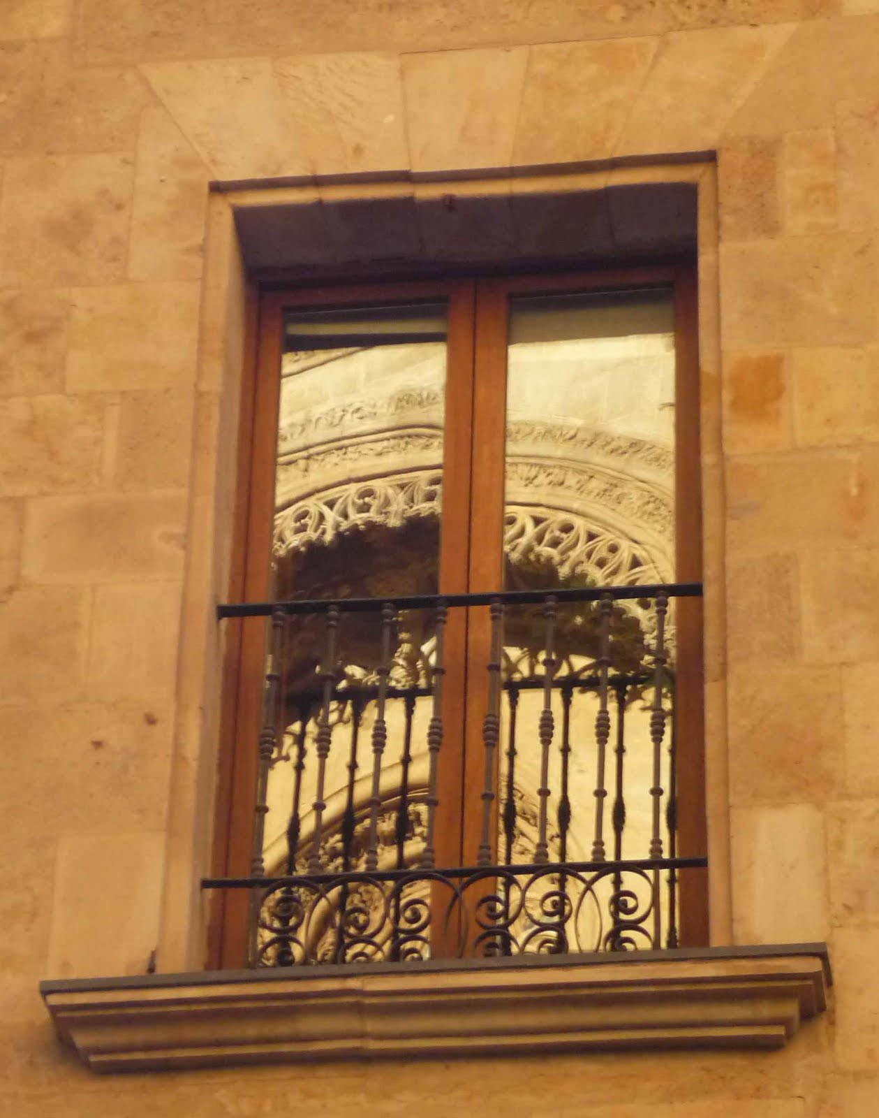 Vislumbrar a Catedral de Salamanca através dos reflexos destas janelas é uma forma diferente de a admirar.