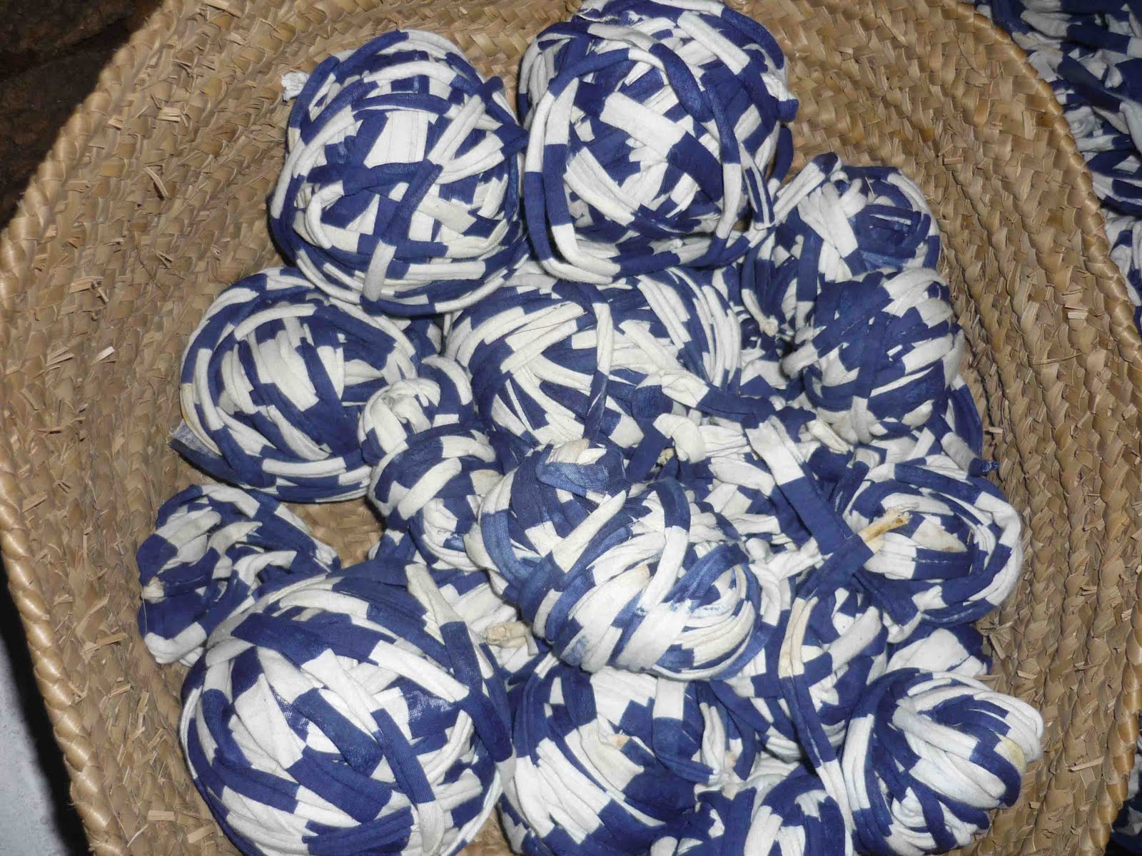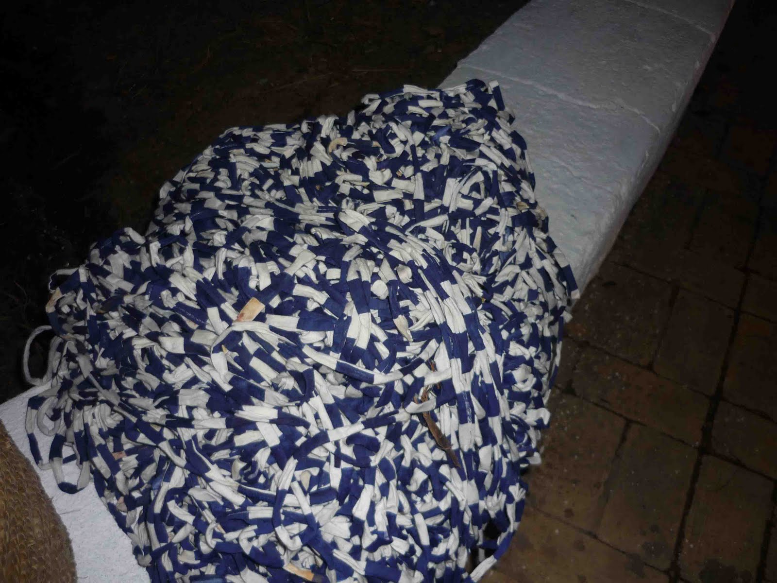 Um monte de trapilho, emaranhado foi posto às disposição dos presentes, objectivo: transformá-lo em rolos.