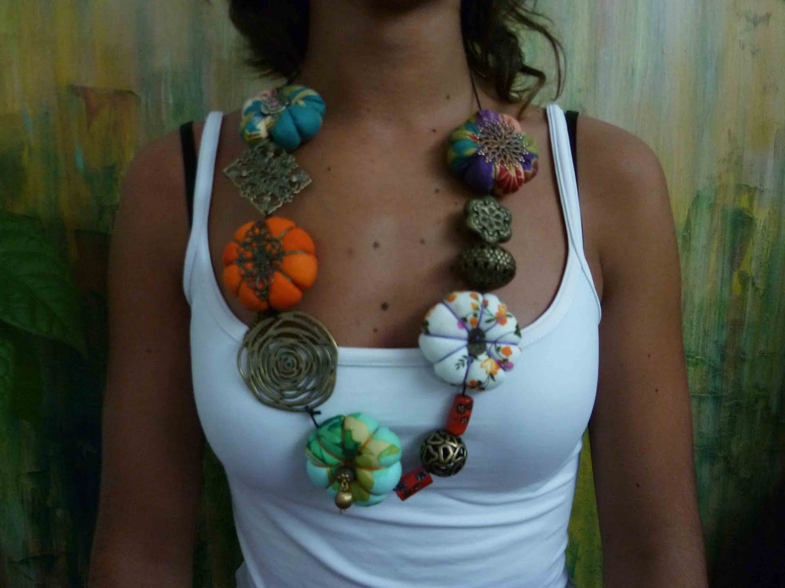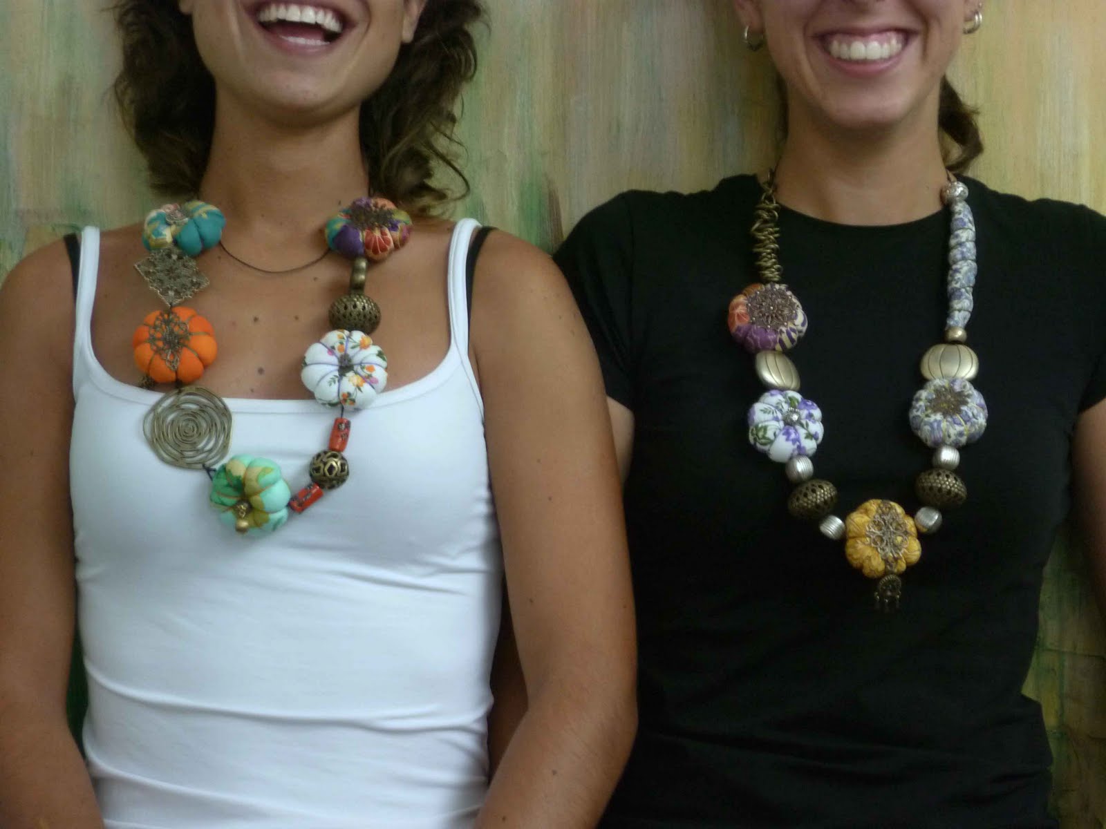 Este foi integralmente feito pela minha amiga N. que ontem aprendeu e colaborou no colar da M. J., a filha Margarida ainda deu uns palpites e entre umas idas ao facebook e umas caipirinhas, ainda tentou fazer uma flor mas não se aplicou nada e diz que costuras só nos doentes, espero que como cirurgiã seja bem melhor do que crafter, acredito que sim, pois ela é uma brilhante aluna em Medicina.