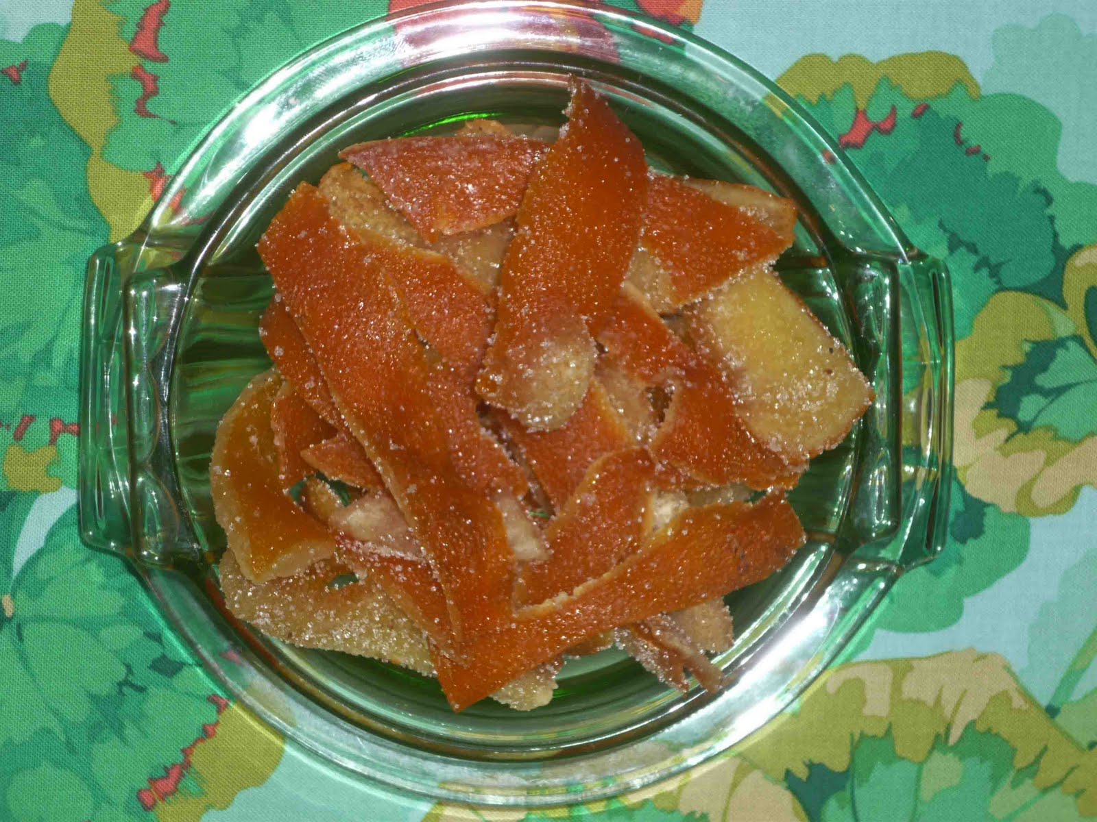 Uma das iguarias de que mais gostamos cá em casa é da casca de laranja cristalizada. A maioria das pessoas não aprecia, no bolo rei a casca da laranja e o figo são na maioria das vezes postas de parte, cá em casa é precisamente o contrário. Eu e o V. adoramos e são no bolo as primeiras fatias a serem cortadas.