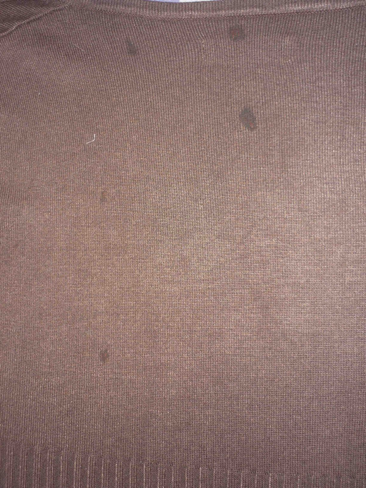 Não faço a mais pequena ideia como foram parar pingos de lixívia às costas deste casaco. Ainda tentei disfarçar com caneta castanha para tecido mas como podem ver não resultou.