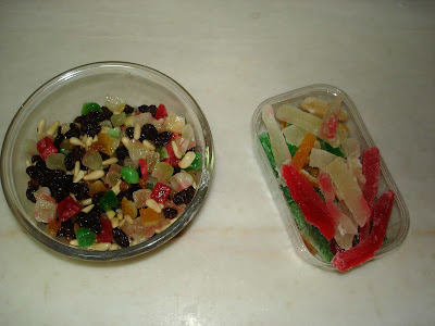 Frutas cristalizadas, passas pinhões e amêndoas são ingredientes indispensáveis, também as nozes mas essas acabaram-se e não me apeteceu ir ao