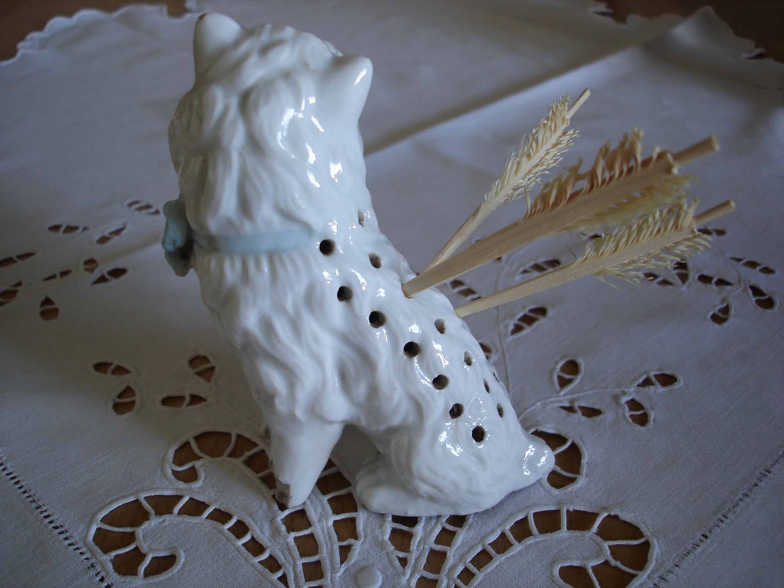 Os palitos que estão neste paliteiro têm 29 anos foram comprados na minha Lua de Mel no Mosteiro do Lorvão. São feitos à mão, mantendo uma tradição começada pelas religiosas do Mosteiro. Nunca fui capaz de os usar porque na altura em que os comprei foi-me dito que já havia muito poucos artesãos a fazê-los.